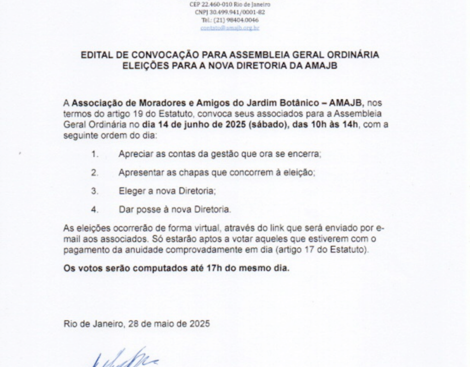 É com grande felicidade que anunciamos outro projeto da Associação de Moradores e Amigos do Jardim Botânico (AMAJB): Projeto Tablado em Movimento. Como nós havíamos mencionado […]