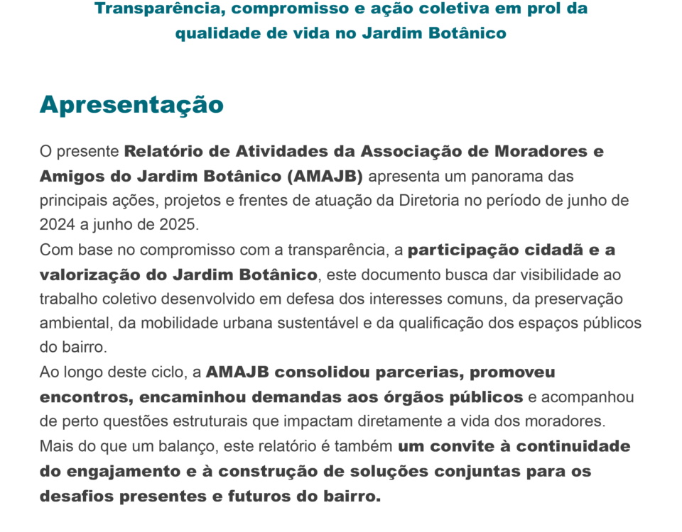 No ano de 2024, a Associação de Moradores do Jardim Botânico reafirmou seu compromisso com a comunidade, promovendo iniciativas que transformaram o bairro em um espaço […]